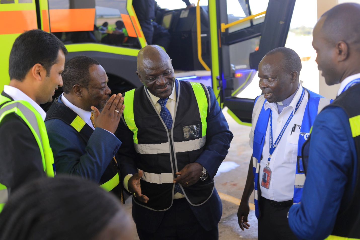 Gen. Katumba Wamala, Minister of Works and Transport, commissioned two new state-of-the-art fire trucks at Entebbe International Airport. These specialized