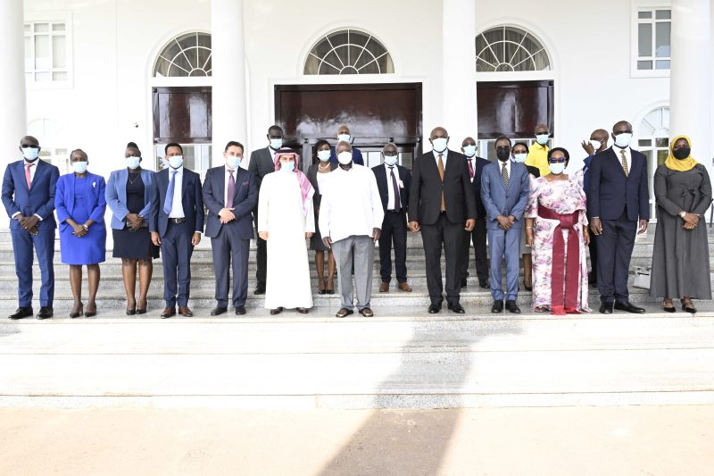 President Museveni in a group photo with Rowad Capital Commercial LLC (RCC) members, and Uganda Telecommunications Corporation Limited after signing an MOU for a joint business venture at the State House Entebbe on December 22, 2023
