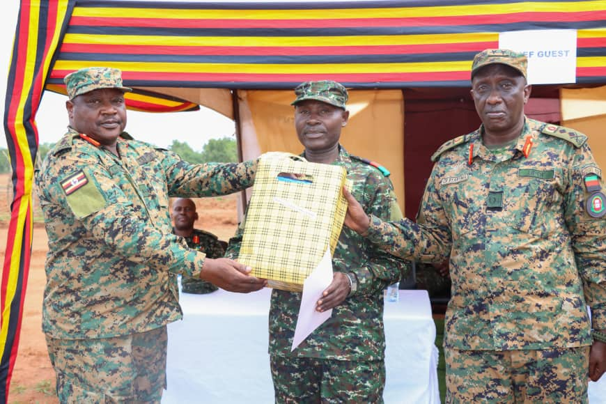 Six trainees received special awards for their outstanding performance. Pte Kamya Kerizon was named overall best student, Sgt Muhaniwemana Lymon won the award for best discipline, while Pte Manyobe Francis excelled in field performance. L/Cpl Akwii Everline was recognised as the best female trainee, Pte Aide George Robert as best in class, and Pte Tumusinguze Mercy Paula as the most improved student.